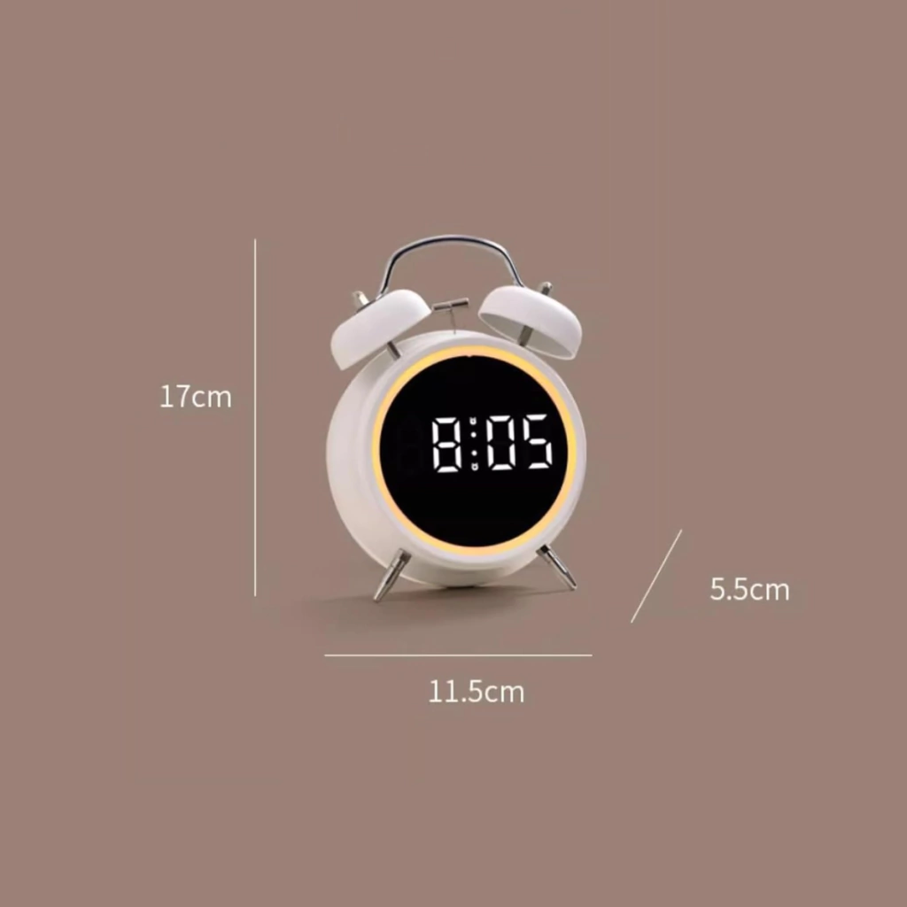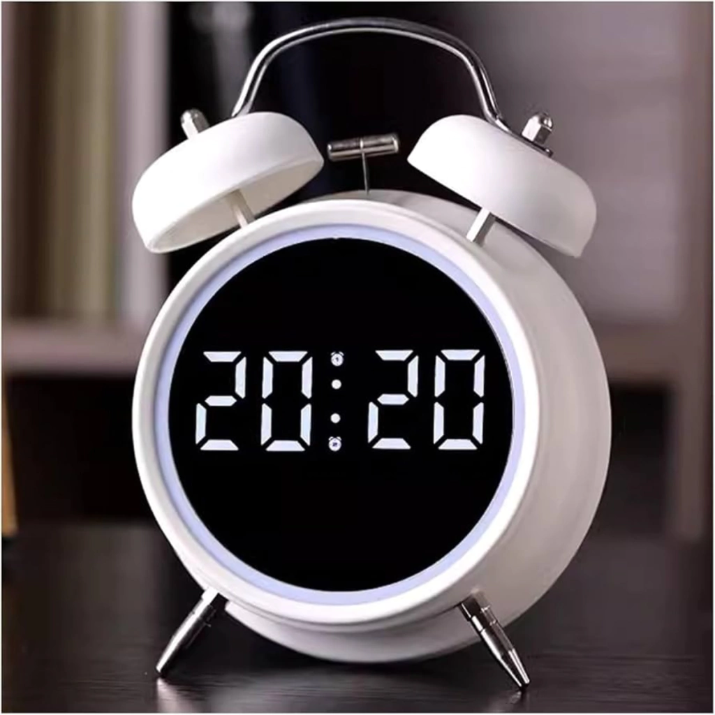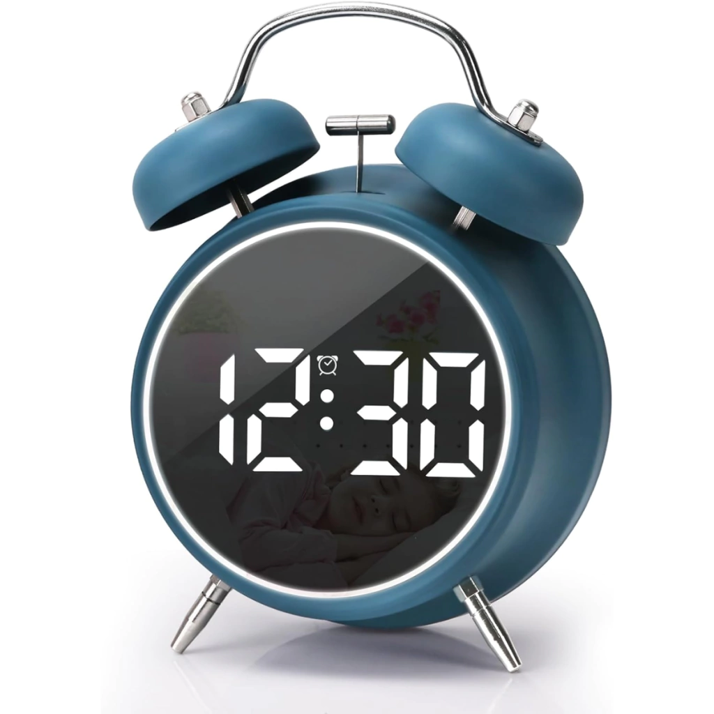 Este reloj combina lo mejor de dos mundos: un diseño retro con doble campana de metal y un timbre mecánico que supera los 70 decibelios, ideal para despertar incluso a los más dormilones. Además, su pantalla LED digital muestra la hora, temperatura y fecha de manera clara e intuitiva.